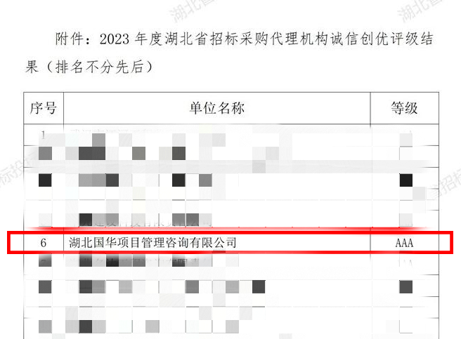 喜报 | 湖北国华荣获2023年度湖北省招标采购代理机构诚信创优AAA级证书